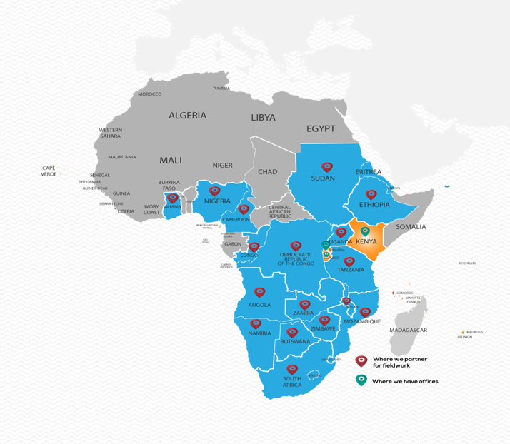 We have experience working in various African countries including:Kenya, Uganda, Tanzania, Rwanda, South Sudan, Malawi, Zambia, Angola, Zimbabwe, South Africa , Botswana, Sudan, Ethiopia, Angola, Nigeria, Ivory Coast, Ghana, Senegal, Burkina Faso